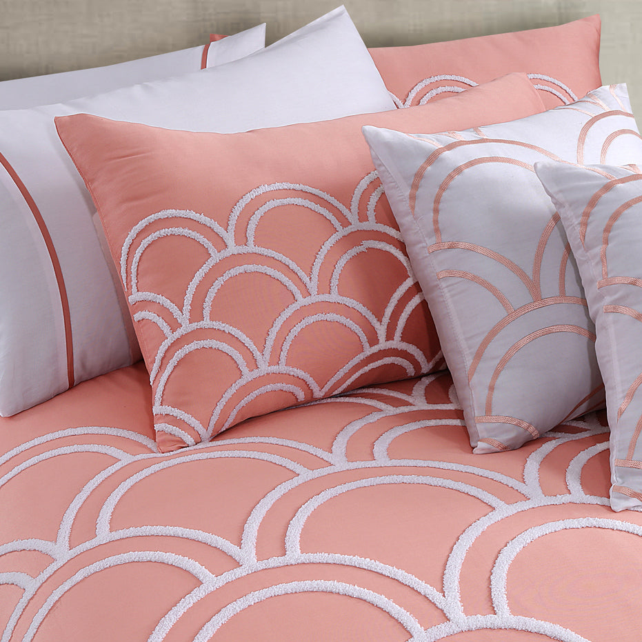Elevate your space with newly introduced tufted embroidery of Coral Cloud Duvet Set, featuring a refreshing combination of coral and white coloured fabrics evoking warmth and elegance.