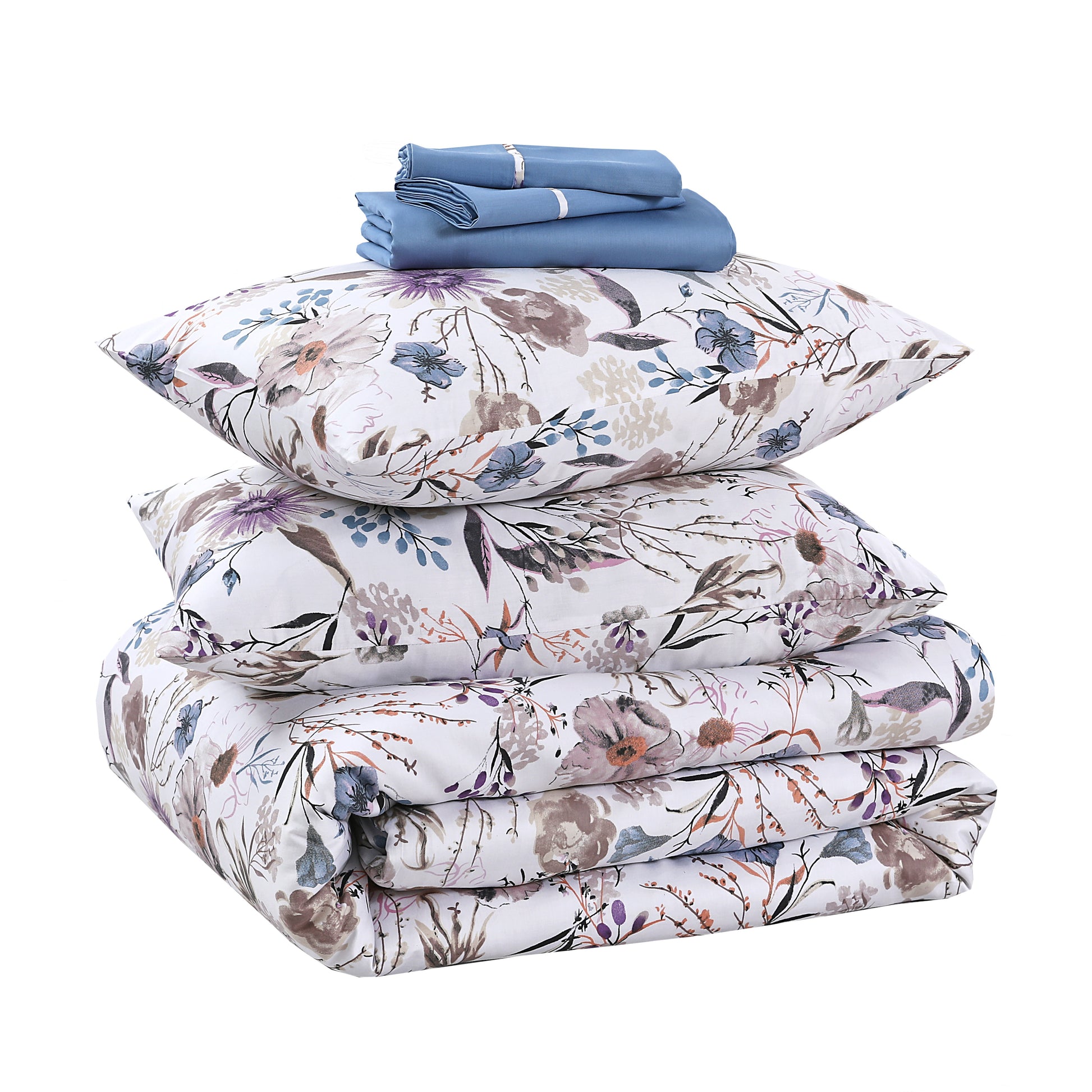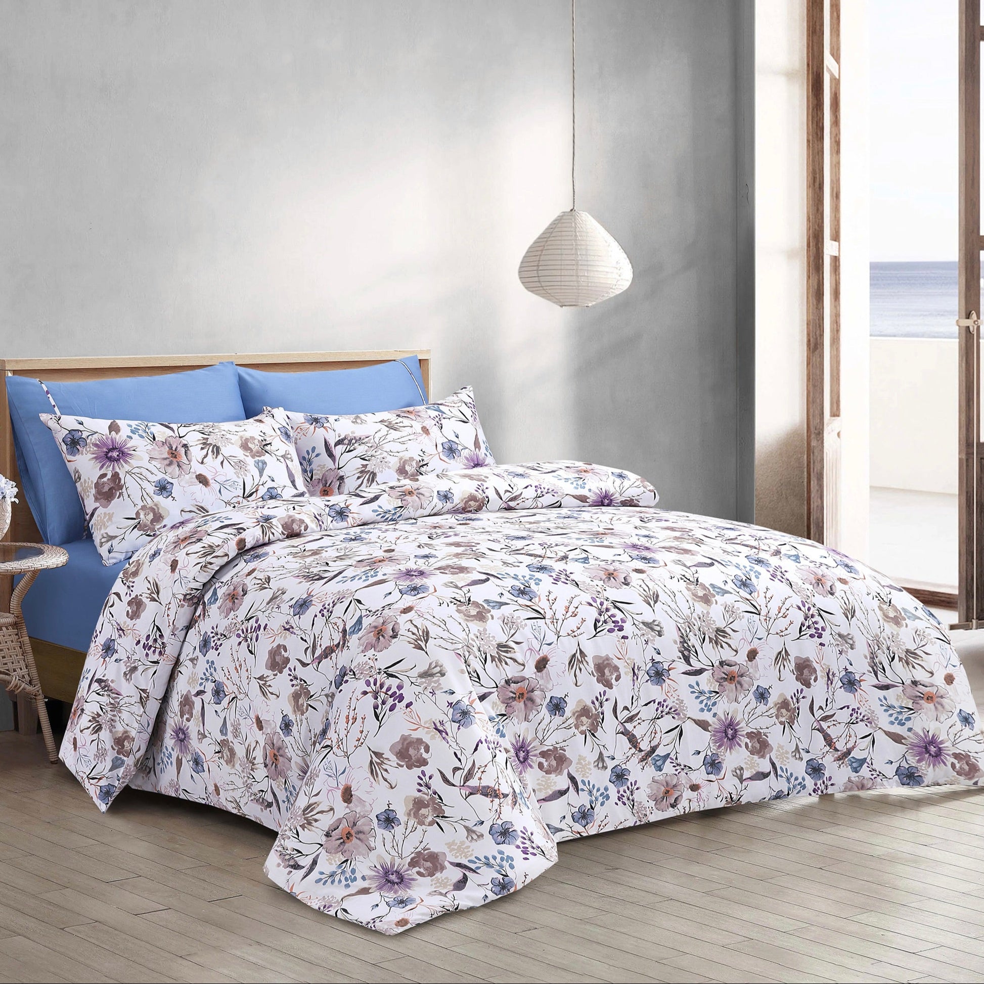 Infuse your space with Garden Haze from our Luxury Printed Collection featuring a unique floral design paired with a contrasting light blue colored sheet, perfect for adding personality to any bedroom.
